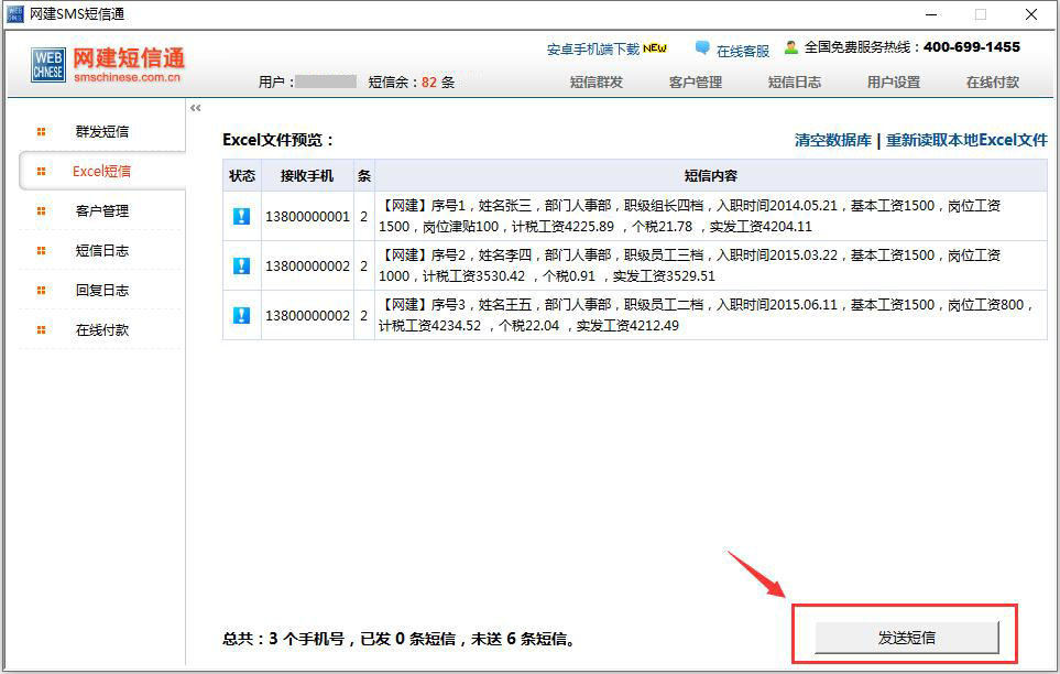 什么是短信工资条?就是把工资明细用短信发到手机上,这样即提高了效率又节省了纸张,又方便。我们来介绍一款用来处理Excel工资条,并将每个人的工资明细以短信的形式发送到对方手机上的软件。 用于快速处理Excel文件中的短信内容、Excel工资条自动拆分发送短信等。
